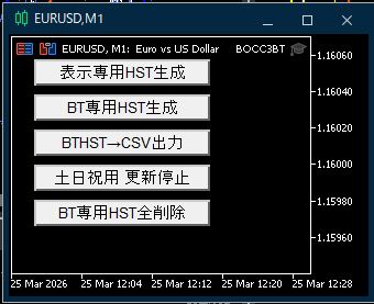 ・表示用ヒストリカルは初回1Tickでバーデータを生成後、時間足確定で確定生成。更新頻度は1秒ごと。