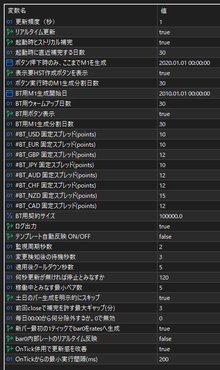 ・合成通貨のヒストリカルは、表示用はOpenCloseで構成、バックテスト用は四本値で構成