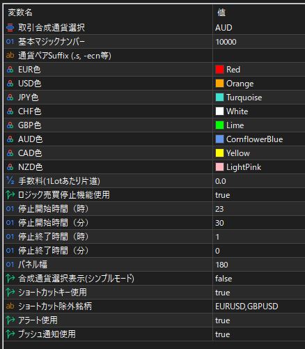 ボックス右上の▲を押すと発注時にNZDペアを除外