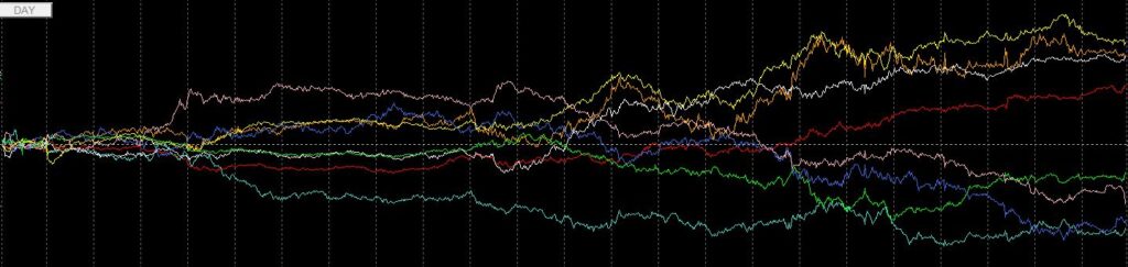 イメージで言うと、通貨強弱トレーダーがよくみるこういうチャート
