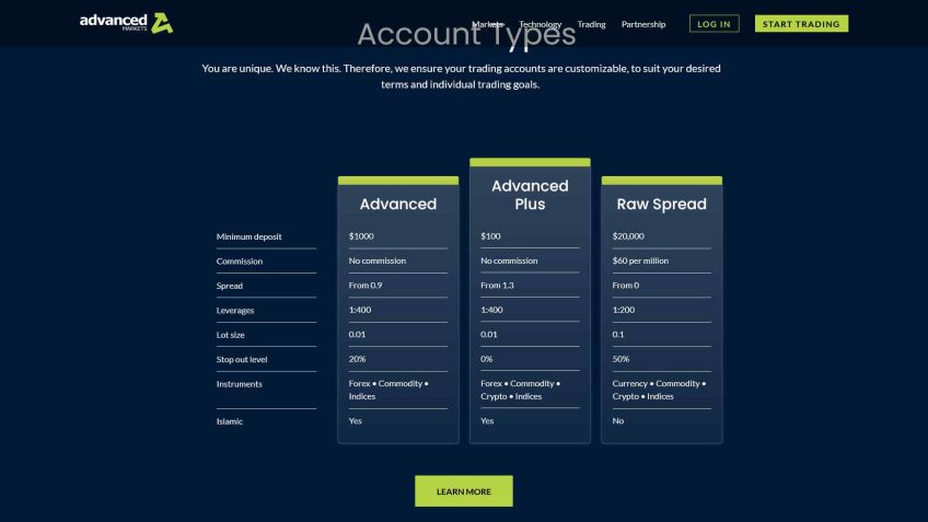 | 口座の種類 | Advanced,Advanced Plus,Raw Spread |