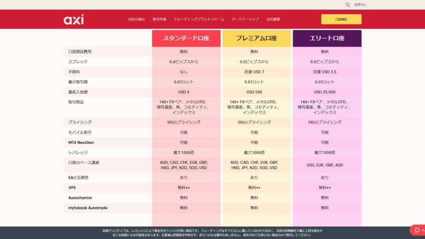 | 口座の種類 | スタンダード プレミアム エリート |