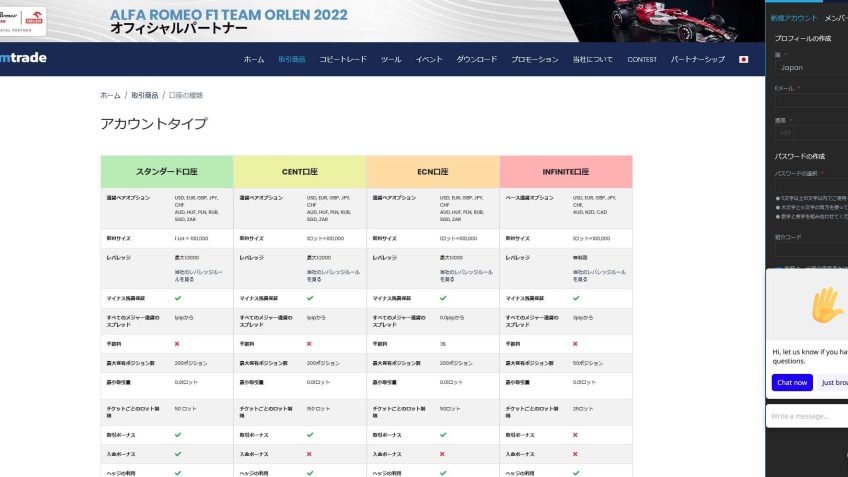 口座の種類 スタンダード、CENT、ECN、INFINITE