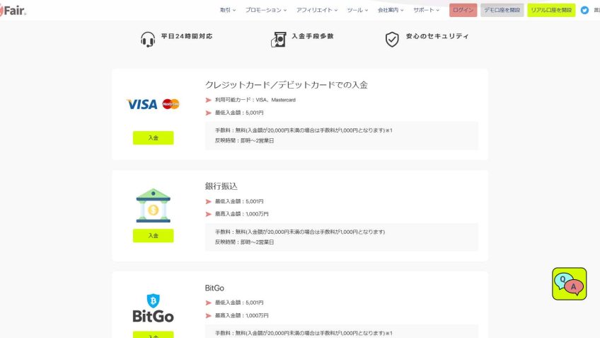 | 入金方法 | VISA, Master, BankTransfer, BitGo, PerfectMoney |