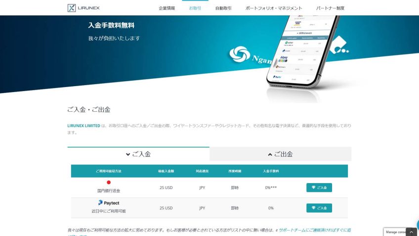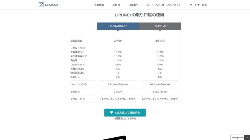 | 口座の種類 | LX-STANDARD LX-PRIME |