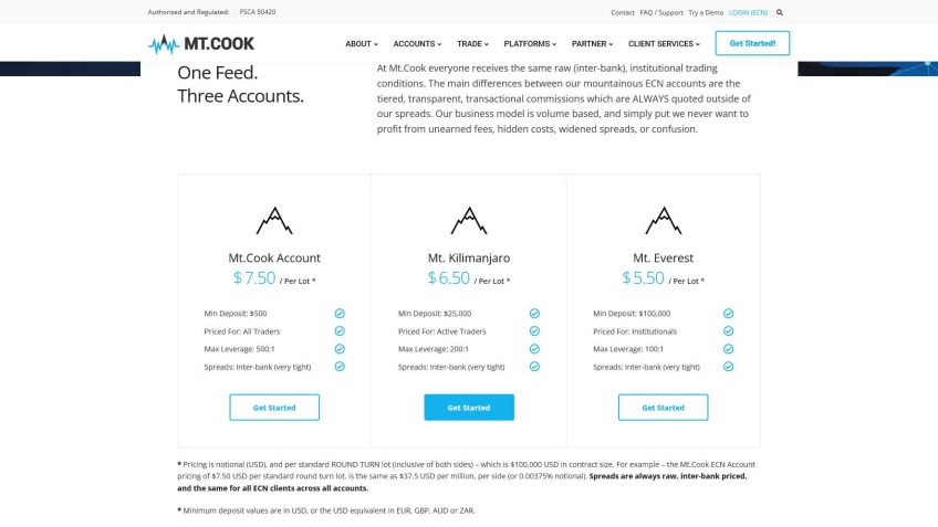 | 口座の種類 | ECN Mt.Cook ECN Mt. Kilimanjaro ECN Mt. Everest DMA |