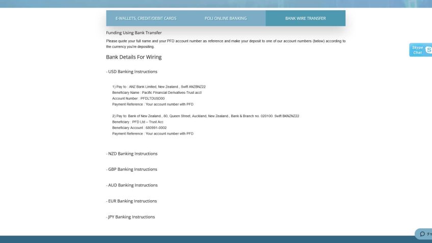 | 入金方法 | Bank Wire (BankTransfer/SWIFT), VISA, MasterCard, PayPal, Poli |